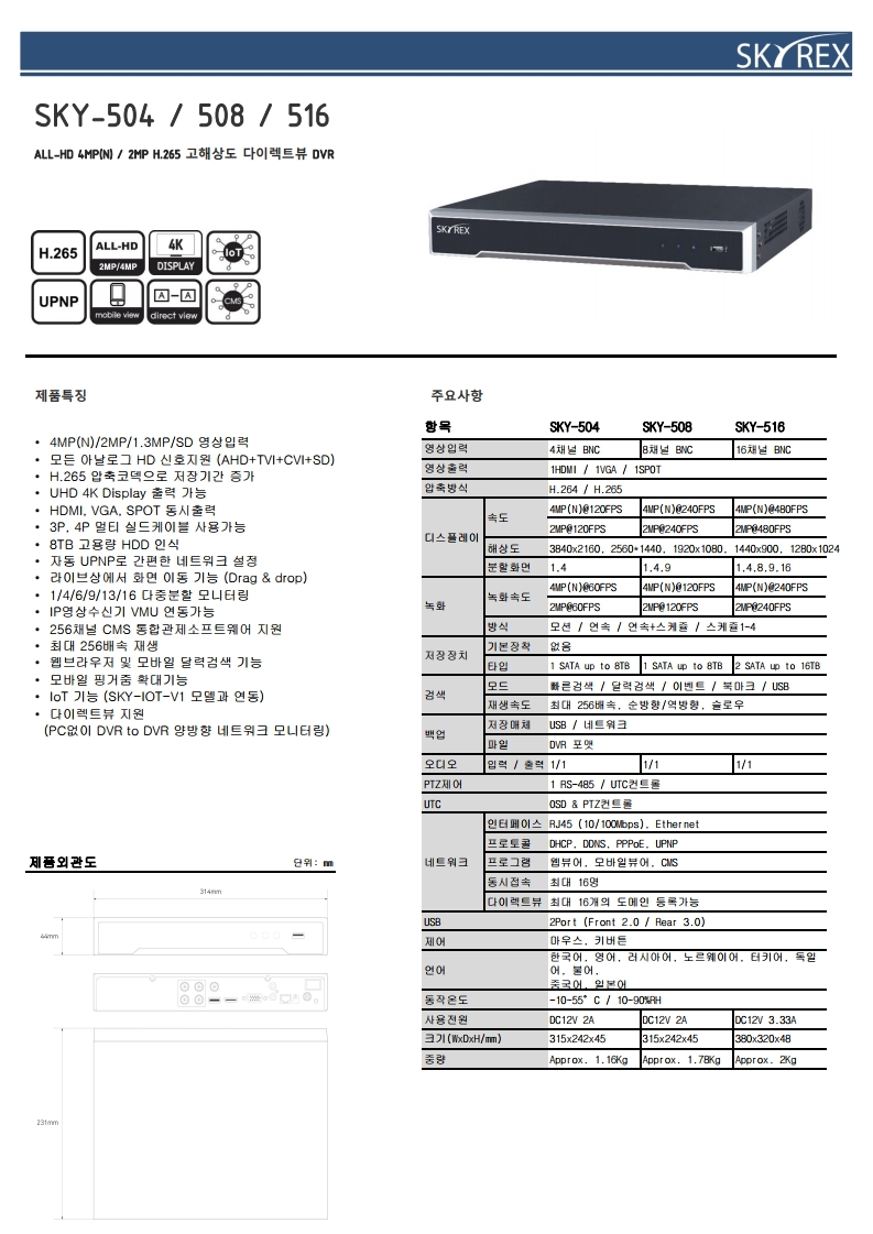 ALL-HD 4MP(N) / 2MP H.265 고해상도 다이렉트뷰 DVR
