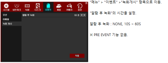 사용 | 이벤트녹화 시간을 변경이 가능 하나요? 페이지 정보 작성자 123123운영자 작성일22-02-16 16:51 조회13,842회 댓글0건 관련링크 이전글 다음글 목록 본문 이벤트녹화 시간(Pre-event, Post event) 변경 방법입니다. 댓글목록 등록된 댓글이 없습니다. 이전글 다음글 목록