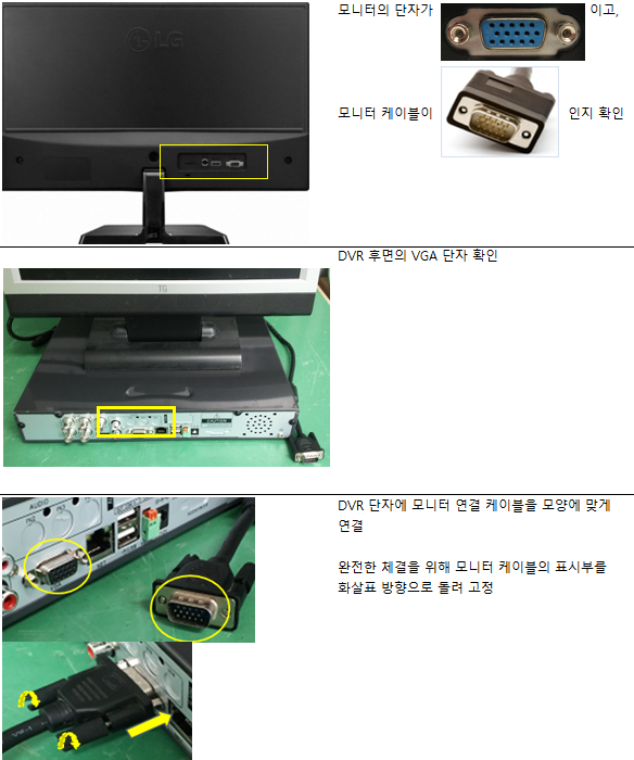 녹화기(DVR)와 모니터 VGA케이블 연결방법