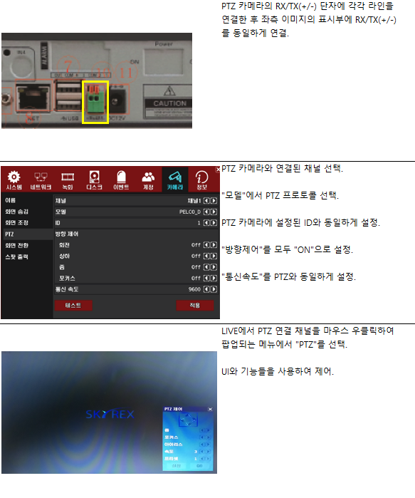 PTZ(스피드돔) 카메라 설정 및 운용 방법입니다.