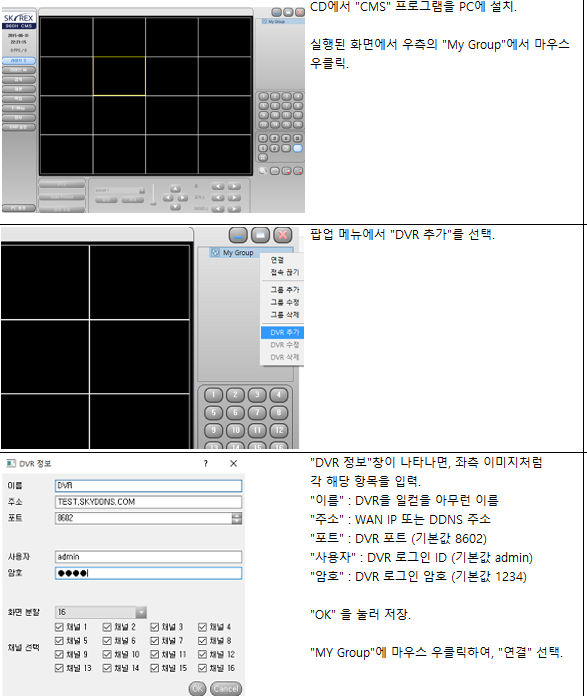 고객지원--->자료실(프로그램/펌웨어) 페이지에서 공지로 올라온 CMS 프로그램 설치파일을 받으시는것을 추천합니다.