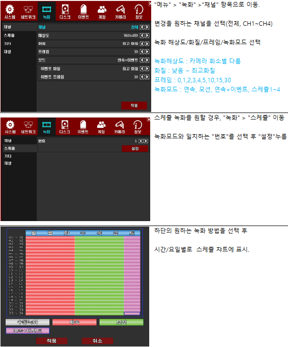 사용 녹화 설정을 변경하고 싶어요 방법이 있을까요? 페이지 정보 작성자 운영자 댓글 0건 조회 8,660회 작성일 22-02-15 17:15 목록 답변 //////////// 본문 DVR 녹화설정 변경 방법입니다. 이전글모션감도와 영역설정을 변경 할 수 있나요? 22.02.15 다음글카메라별로 색상을 변경 할 수 있나요? 22.02.15 댓글 0 댓글목록 등록된 댓글이 없습니다.