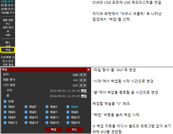 1. AVI백업파일로 실행시 즉시 영상확인 가능 (추천)