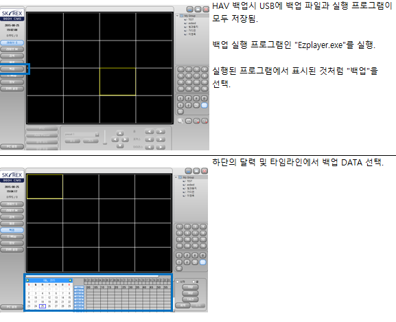 2. HVI백업파일은 'Ezplayer.exe'실행 프로그램으로 영상확인 가능